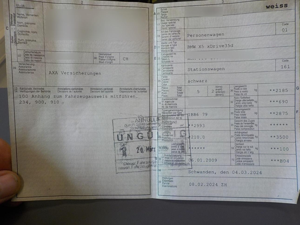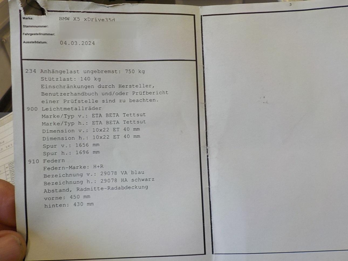 Geteilte Heckklappe, Leseleuchten vorne, Steckdose im Kofferraum, Veloursfussmatten vorne und hinten, Radio BMW Professional, 2 Steckdosen in der Mittelkonsole (vorne und hinten), Start-/Stop-Knopf, ISOFIX Kindersitzvorrichtung, 3 Kopfstützen hinten, Drehzahlmesser, Leuchtweitenregulierung von innen, Klimatisierungsautomatik, Handschuhfach, Elektronische Differentialsperre (ADB-X), Lenkrad: Multifunktionslenkrad, Zentralverriegelung mit Fernbedienung, Dynamische Stabilitätskontrolle (DSC), Nebelscheinwerfer, Befestigungsösen im Laderaum, Airbag: Airbag Fahrer und Beifahrer, iDrive-System, Heckscheiben-Wisch-/Waschanlage, Frontscheibe Verbundglas, Grün getönte Scheiben, Abblendlichtausschaltverzögerung 'Follow me home’, Wartungsintervall-Anzeige, Bremsbelag-Verschleissanzeige, Laderaumabdeckung, Allradantrieb permanent, Scheibenwischer vorne mit Intervall, Ausstiegsleuchten in den Türen, Aktive Kopfstützen, Scheibenwaschdüsen beheizt, Mittelarmlehne vorne, Park Distance Control vorne und hinten, Leichtmetallfelgen im Sternspeiche 209 18J mit Pneu, Sicherheitstrennnetz oder /-gitter im Gepäckraum, Servolenkung geschwindigkeitsabhängig, Anbauteile in Wagenfarbe, Airbag: Seitenairbag für Fahrer und Beifahrer, Armlehne vorne mit Ablagefach, Elektrische Fensterheber vorne + hinten, Lackierung: Uni-Lackierung, Assist: Cornering Brake Control (CBC), Vordersitze mit elektrischer Höhen-, Lehnen-, und Neigungseinstellung, Lichtwarnsummer, Wegfahrsperre elektronisch, Schliesshilfe für Heckklappe, Sitzbelegungserkennung für Beifahrersitz, Hill Descent Control (HDC), Tageskilometerzähler, Cupholder vorne und hinten, Aufklappbare Heckscheibe, Getriebe: 6-Stufen-Automat Steptronic, Tagfahrlicht, Bremsassistent (BAS), Aussentemperaturanzeige, Stossstangen und Aussenspiegel in Wagenfarbe, Lenkrad: Lenkrad längs- und höhenverstellbar, Automatische Stabilitäts-Control (ASC), Assist: Anfahrassistent, Klima: Klimaanlage, Aussenspiegel rechts und links beheizbar und elektrisch verstellbar, Assist: Tempomat mit Bremsfunktion, Aux-In Anschluss, Mittelarmlehne hinten, Reifen mit Notlaufeigenschaft, Bordcomputer, Antiblockiersystem (ABS), Elektronische Parkbremse, Verbandskasten, Beide Make up-Spiegel beleuchtet, Digital Uhr, Check-Control-System, Licht: Nebelschlussleuchte, Gurtstraffer vorne, Gepäckraumboden abschliessbar, Höhenverstellbare Gurten vorne, Stoff-Ausstattung, Automatische Umluftkontrolle, Window-Kopfairbags, Partikelfilter und Oxydationskatalysator, Rücksitzlehne geteilt abklappbar, Reifendruckverlust-Warnsystem, Oelstandsanzeige, Stereolautsprechersystem mit 6 LS, Nichtraucherausführung, Lenkrad und Schalthebelgriff in Leder, Aktivkohlefilter (Geruchsfilter), Vordersitze mechanisch längsverstellbar, Drittes Bremslicht, Innen- und Aussenspiegel automatisch abblendend, Abschliessbare Radschrauben, Seitenaufprall-Schutzsystem, Fussraumbeleuchtung vorne, Info-Display, Interieurleisten Graphitan matt, Pollenfilter (Staubfilter)