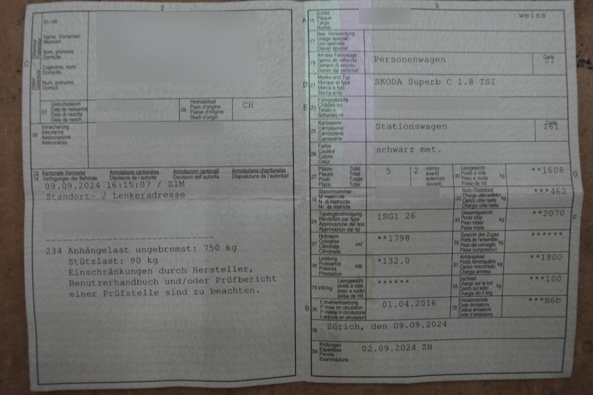 Fahrzeugausweis Vorhanden