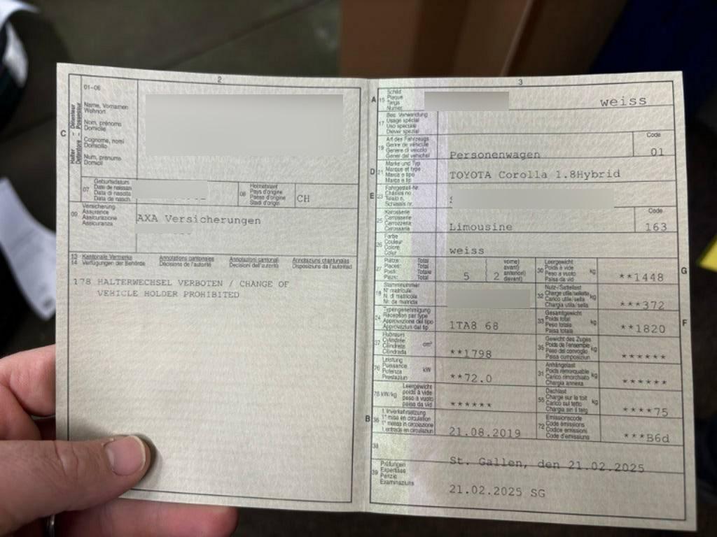 Fahrzeugausweis Vorhanden