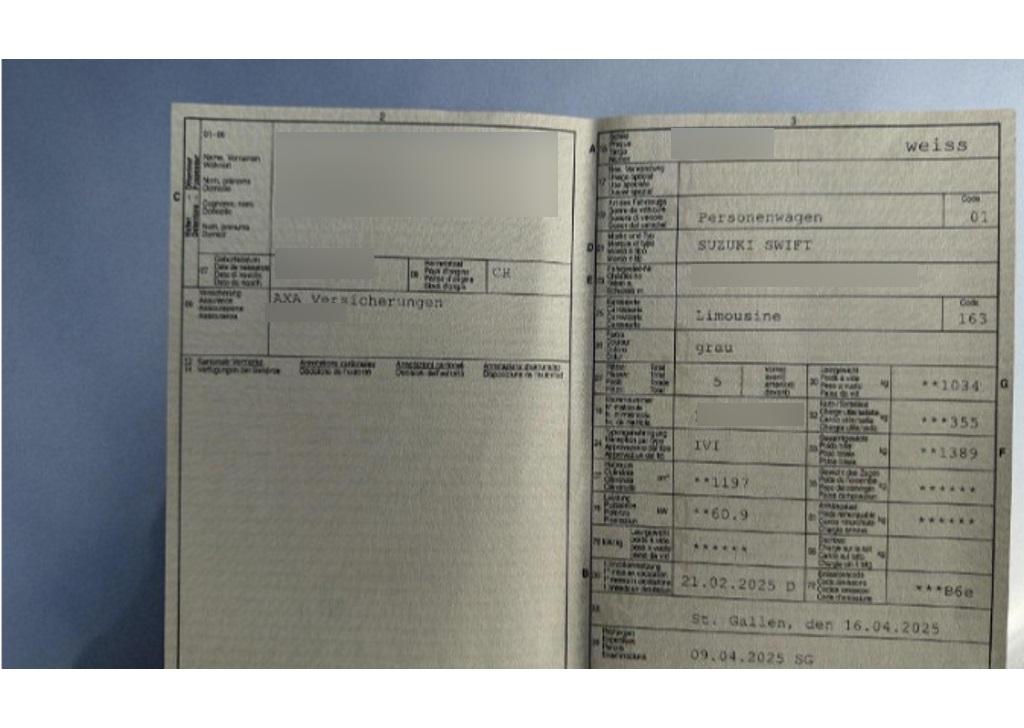 | Fahrzeugausweis | Vorhanden |