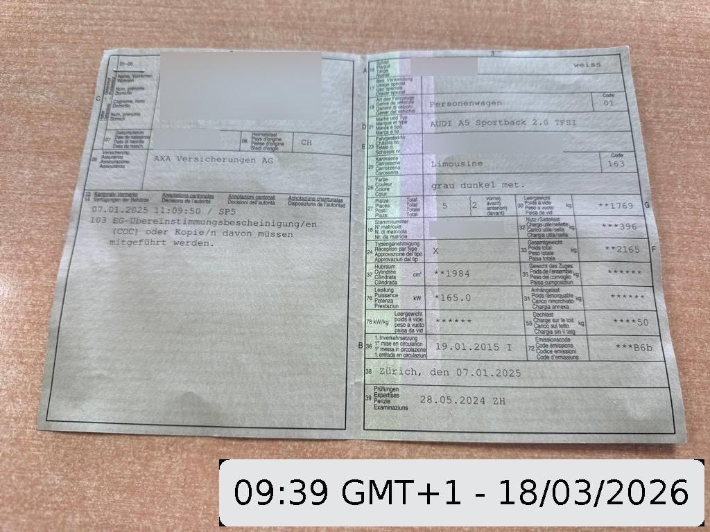 | Fahrzeugausweis | Vorhanden |