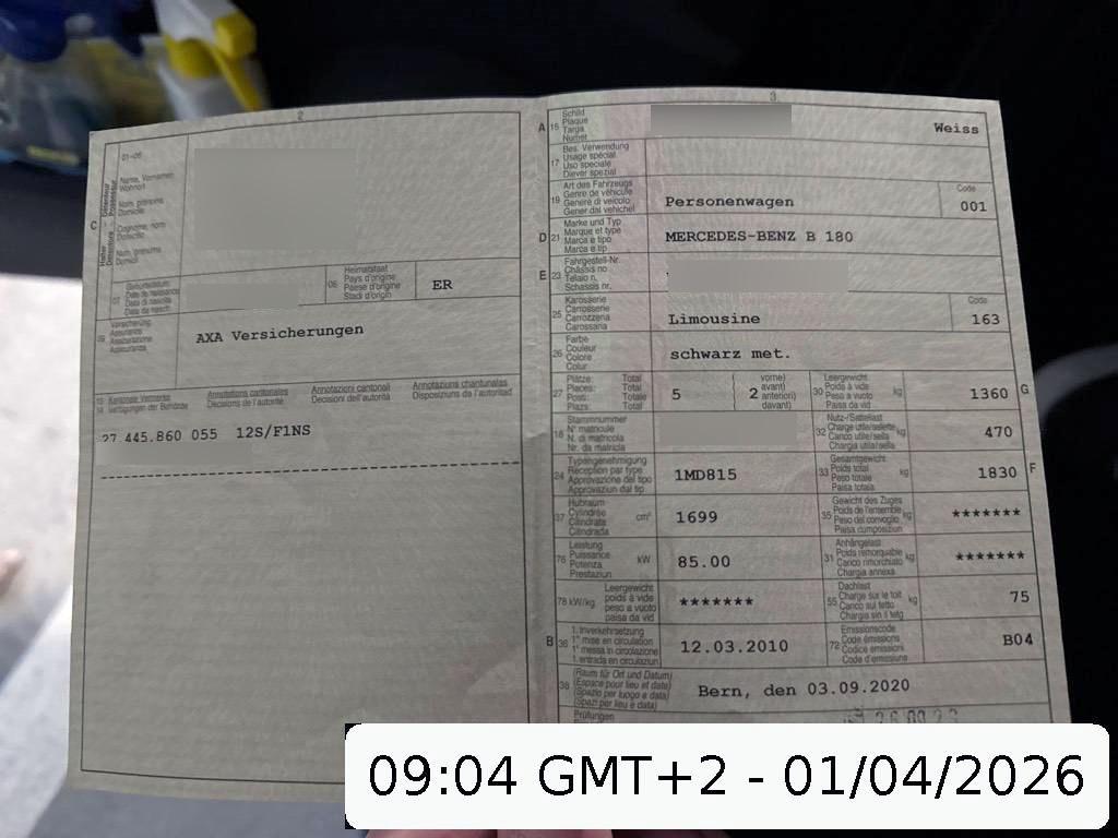 Airbag: Seitenairbag für Fahrer und Beifahrer, Digital Uhr, Sitze:Aktive Kopfstützen, Höhenverstellbare Gurten vorne + hinten, Reifendruckverlust-Warnsystem, Sportpedalanlage, Heckscheiben-Wisch-/Waschanlage mit, Seitenschwellerverkleidung in Wagen- farbe lackiert, Leseleuchten vorne, Schutzleisten in Wagenfarbe, Steckdose, Scheibenwischer vorne mit Intervall, Antriebsschlupfregelung (ASR), Aussentemperaturanzeige, Kühlergrill-Lamellen in Atlasgrau mit Chromleisten, Wartungsintervall-Anzeige, Sitze: Rücksitzlehne geteilt abklappbar, Licht: Fahrlichtassistent (automatisches Fahrlicht), Zentralverriegelung mit Fernbedienung, Sitze: ISOFIX Kindersitzvorrichtung, Licht:Adaptives Bremslicht, Sitze: Armlehne vorne mit Ablagefach, Wagenheber, Schalthebel aus Aluminium und Leder, Cupholder vorne und hinten, Wegfahrsperre elektronisch, Pollenfilter (Staubfilter), Auffindbeleuchtung, Licht: Drittes Bremslicht, Lederhandbremshebel, Fahrersitz höhenverstellbar, Stossstangen, Aussenspiegel und Türgriff in Wagenfarbe, Fussraumbeleuchtung vorne, Verbandskasten, Antiblockiersystem (ABS), Lederlenkrad mit Dekoreinlagen, Airbag: Airbag Fahrer und Beifahrer, Gepäcknetz im Beifahrerfussraum, Handschuhfach klimatisierbar, Sitze:Kopfstützen hinten höhenverstellbar, Assist: Berganfahrhilfe, Polster:Polsterung Stoff/Ledernachbildung ARTICO, Lackierung: Uni-Lackierung, Reiserechner, Klima:Klimaanlage, Sitze:Gurtstraffer vorne, Lenkrad: Multifunktionslenkrad, Lenkrad längs- und höhenverstellbar, Blinker in Aussenspiegel, Lichtwarnsummer, Scheinwerferaufschaltung, Sitzbelegungserkennung für Beifahrersitz, Befestigungsösen im Laderaum, Gurtkontrolle, Ladeboden variabel, Drehzahlmesser, Parameterlenkung elektromechanisch mit Lenkassistent STEER CONTROL, Bordinstrumente mit weisser Beleuchtung und Multifunktionsdisplay, Brillenablage, Elektronisches Stabilitäts-Programm (ESP), Bremsassistent (BAS), Crashaktive Notbeleuchtung, Katalysator geregelt, Ladekantenschutz, Licht: Nebelschlussleuchte, Aluminiumapplikationen rauchgrau, Laderaumabdeckung, Multifunktionsanzeige, Einstiegsschienen mit Logo, Aussenspiegel rechts und links beheizt und elektrisch verstellbar, asphärisch gewölbtes Spiegelglas, Bremsbelagverschleiss, Fensterheber elektrisch vorne mit automatischer Hoch-und Tieflaufsteuerung, Frontscheibe Verbundglas, Getönte Scheiben, Heckscheibenheizung, Kombi-Instrumente mit Chromzierringen, Kontrollanzeige für Lampenausfall, Licht:Halogenscheinwerfer, MB-Radio Audio 5 RDS mit CD-Player MP3, Aux-in Anschluss (im Handschuhfach), Make up-Spiegel links, Make up-Spiegel rechts, Polster: Stoff-Ausstattung, Radzierblenden, Selektives mechanisches Dämpfungssystem, Sitze: 3-Punkt-Sicherheitsgurte auf allen Plätzen, Sitze: Vordersitze manuell verstellbar, Stahlräder 15J, Tempomat inkl. SPEEDTRONIC