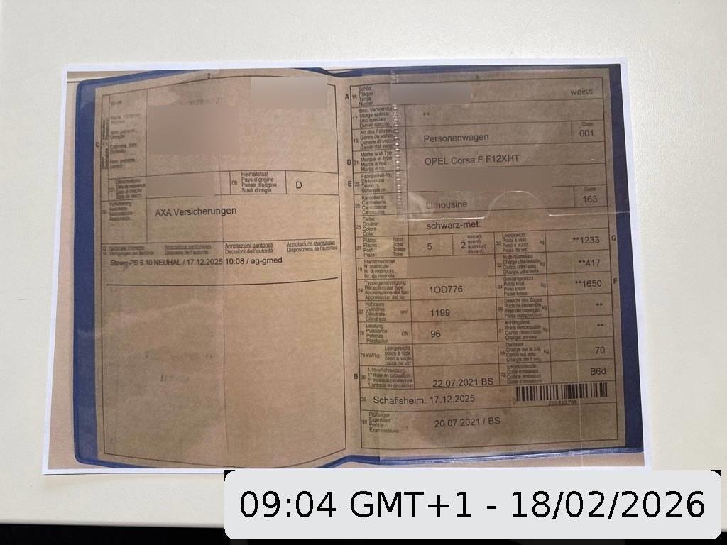 Fahrzeugausweis Vorhanden