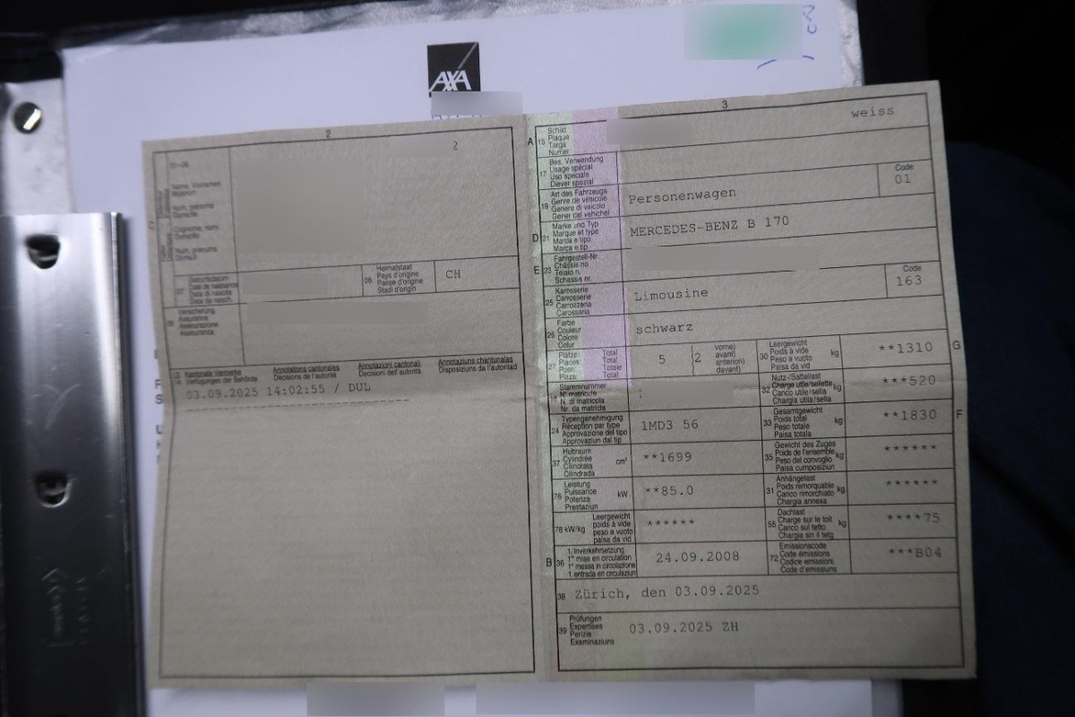 5-Gang-Getriebe, Airbag: Airbag Fahrer und Beifahrer, Airbag: Seitenairbag für Fahrer und Beifahrer, Aluminiumapplikationen rauchgrau, Antiblockiersystem (ABS), Antriebsschlupfregelung (ASR), Assist: Berganfahrhilfe, Aussenspiegel rechts und links beheizt und elektrisch verstellbar, asphärisch gewölbtes Spiegelglas, Aussentemperaturanzeige, Befestigungsösen im Laderaum, Blinker in Aussenspiegel, Bremsassistent (BAS), Bremsbelagverschleiss, Brillenablage, Crashaktive Notbeleuchtung, Cupholder vorne und hinten, Digital Uhr, Drehzahlmesser, Einstiegsschienen mit Logo, Elektronisches Stabilitäts-Programm (ESP), Fahrersitz höhenverstellbar, Fensterheber elektrisch vorne mit automatischer Hoch-und Tieflaufsteuerung, Frontscheibe Verbundglas, Gepäcknetz im Beifahrerfussraum, Getönte Scheiben, Gurtkontrolle, Handschuhfach klimatisierbar, Heckscheiben-Wisch-/Waschanlage mit, Heckscheibenheizung, Höhenverstellbare Gurten vorne + hinten, Katalysator geregelt, Klima:Klimaanlage, Kombi-Instrumente mit Chromzierringen, Kontrollanzeige für Lampenausfall, Kühlergrill-Lamellen in Atlasgrau mit Chromleisten, Lackierung: Uni-Lackierung, Ladeboden variabel, Ladekantenschutz, Laderaumabdeckung, Lenkrad längs- und höhenverstellbar, Lenkrad: Multifunktionslenkrad, Leseleuchten vorne, Licht: Drittes Bremslicht, Licht: Fahrlichtassistent (automatisches Fahrlicht), Licht: Nebelschlussleuchte, Licht:Adaptives Bremslicht, Licht:Halogenscheinwerfer, Lichtwarnsummer, MB-Radio Audio 5 RDS mit CD-Player MP3, Aux-in Anschluss (im Handschuhfach), Make up-Spiegel links, Make up-Spiegel rechts, Multifunktionsanzeige, Parameterlenkung elektromechanisch mit Lenkassistent STEER CONTROL, Pollenfilter (Staubfilter), Polster: Stoff-Ausstattung, Radzierblenden, Reifendruckverlust-Warnsystem, Reiserechner, Scheibenwischer vorne mit Intervall, Schutzleisten in Wagenfarbe, Seitenschwellerverkleidung in Wagen- farbe lackiert, Selektives mechanisches Dämpfungssystem, Sitzbelegungserkennung für Beifahrersitz, Sitze: 3-Punkt-Sicherheitsgurte auf allen Plätzen, Sitze: Armlehne vorne mit Ablagefach, Sitze: ISOFIX Kindersitzvorrichtung, Sitze: Rücksitzlehne geteilt abklappbar, Sitze: Vordersitze manuell verstellbar, Sitze:Aktive Kopfstützen, Sitze:Gurtstraffer vorne, Sitze:Kopfstützen hinten höhenverstellbar, Stahlräder 15J, Steckdose, Stossstangen, Aussenspiegel und Türgriff in Wagenfarbe, Verbandskasten, Wagenheber, Wartungsintervall-Anzeige, Wegfahrsperre elektronisch, Zentralverriegelung mit Fernbedienung