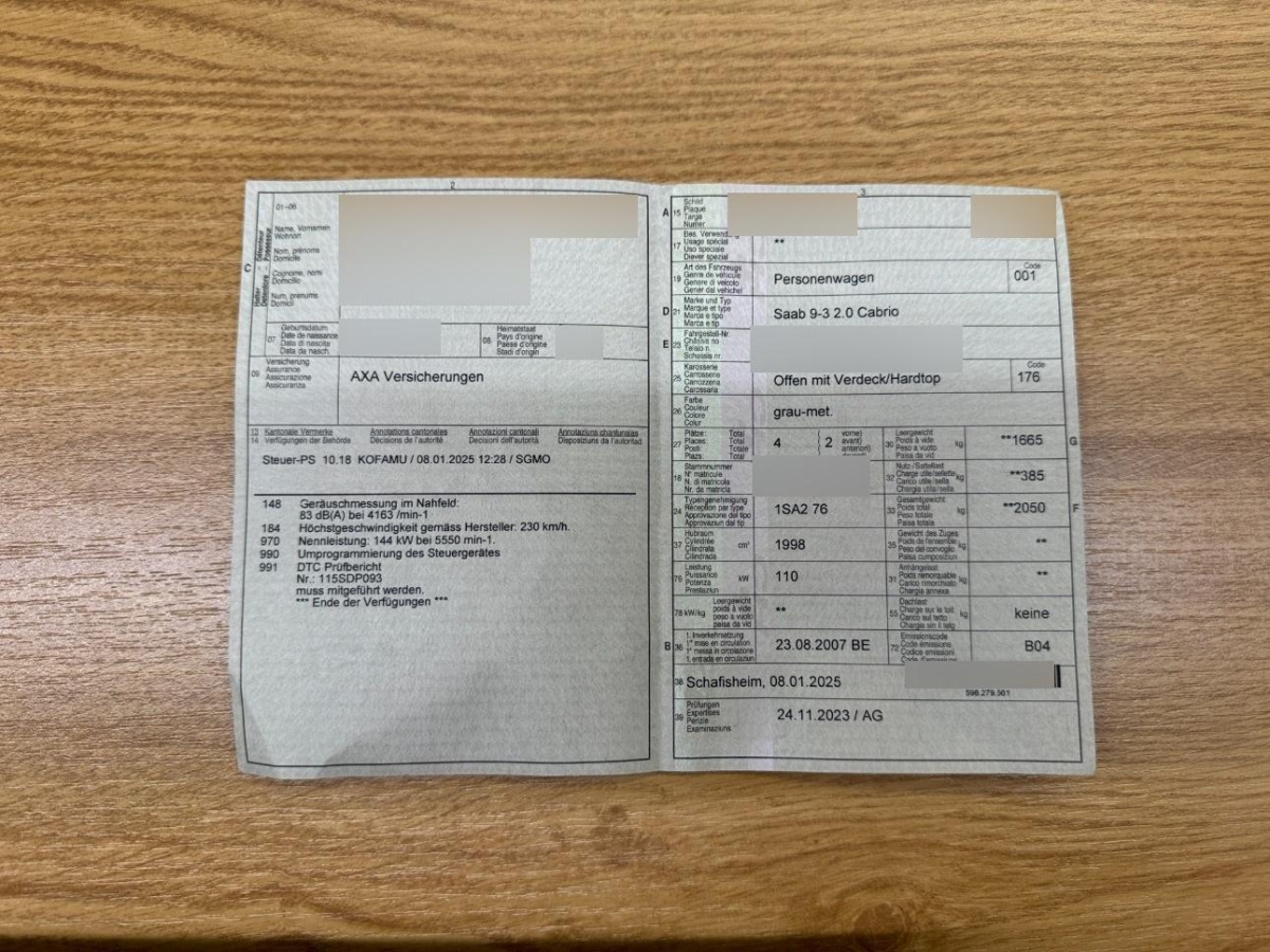 Fahrzeugausweis Vorhanden