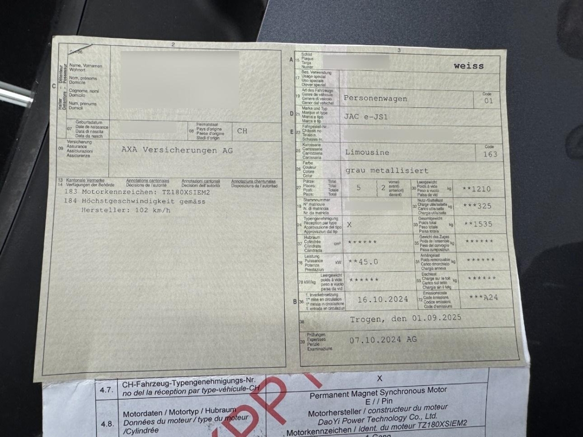 | Fahrzeugausweis | Vorhanden |