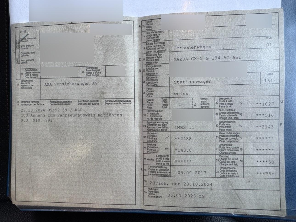 | Fahrzeugausweis | Vorhanden |