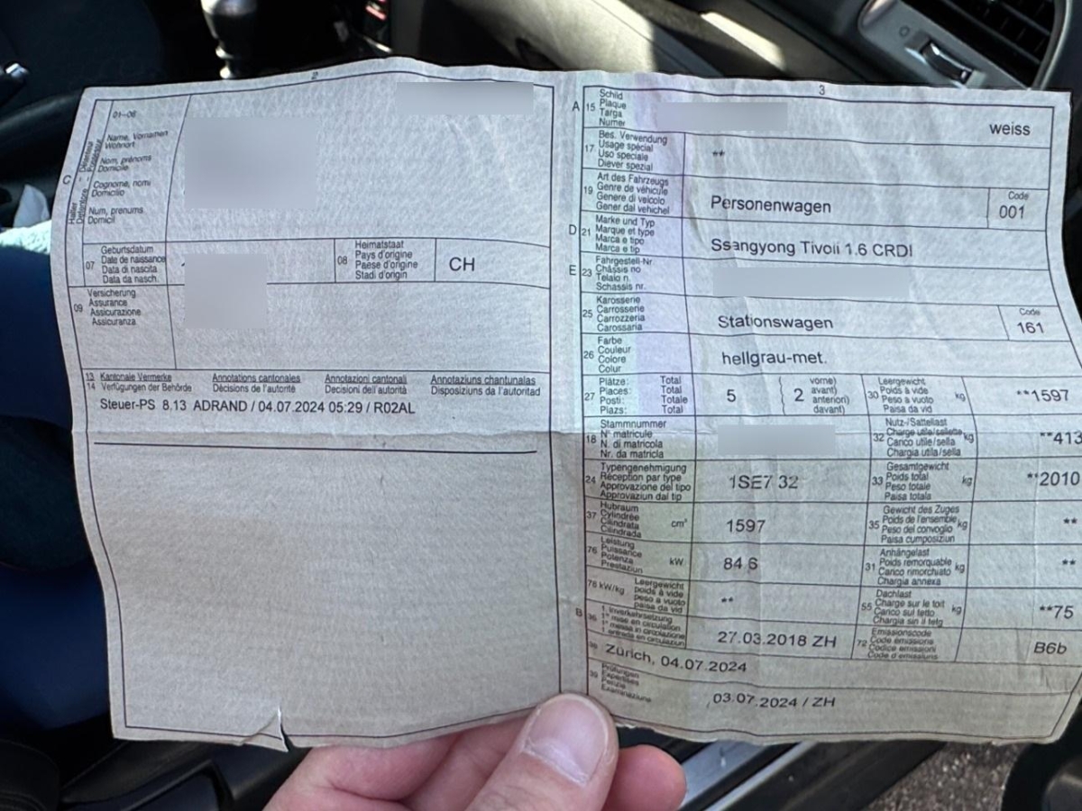 | Fahrzeugausweis | Vorhanden |