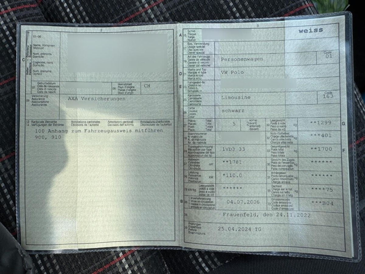 | Fahrzeugausweis | Vorhanden |