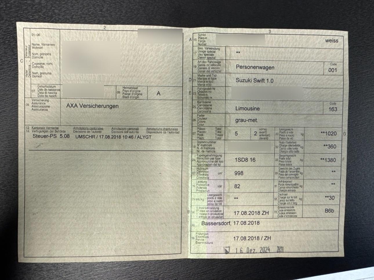 | Fahrzeugausweis | Vorhanden |