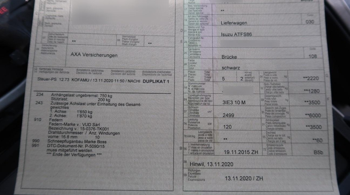 Die (vom Fahrzeugexperten) ermittelten Reparaturkosten beziehen sich auf das versicherte Ereignis. Allfällige zusätzliche, nicht versicherte Schäden/Vorschäden, sind in den Reparaturkosten nicht enthalten. Die deklarierten Ausstattungsmerkmale können von der effektiven Ausstattung abweichen.