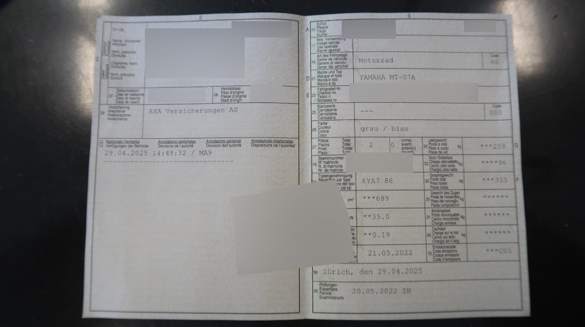 Fahrzeugausweis Vorhanden