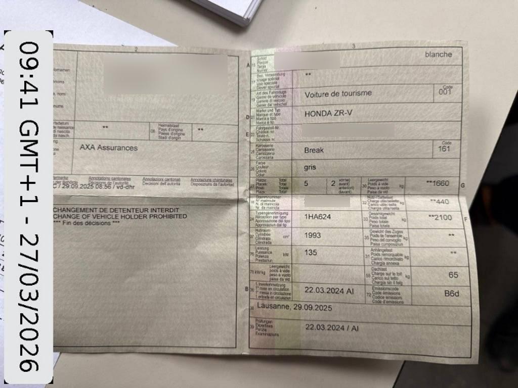 Assist: Frontkollisionswarnung, Dekor: Zierleisten an Mittelkonsole und Armaturenbrett, Assist: Traktionskontrolle, Licht: Aktive HSS-Scheinwerfer, Lackierung: Uni-Lackierung, Aussenspiegel in Wagenfarbe, Frontstossfänger Design – Urban, Licht: LED-Blinker vorne, Sitze: Rücksitzbank mit Mittelarmlehne, Kartenleselicht vorne, Licht: Einschaltautomatik für Scheinwerfer, Lenkrad: Lederlenkrad, Räder: Reifendruck-Kontrollanzeige, Fernbedienung zur Zentralverriegelung mit 2 Flip Keys, Licht: LED Heckleuchten, Räder: Reifenreparatur-Set (Tire Fit), Assist: Notbremssignal, Media: 7-Zoll-Touchscreen, Assist: Bremssystem für niedrige Geschwindigkeit, Assist: Warnung beim Verlassen der Spur, Wählbare Türentriegelung, Polster: Stoff Schwarz, Innenbeleuchtung, Airbag: Seiten-Airbags, Gepäckraumabdeckung, Wegfahrsperre elektronisch, Assist: Parksensoren (4 vorne und 4 hinten), Lenkrad: Multifunktions lenkrad, Türgriffe in Karosseriefarbe, Media: Honda Connect mit Navigationssystem, Garantie: 5 Jahre auf Hybridkomponenten oder 100’000 km (ab 1. Inv.), Gepäckraumbelechtung, Assist: Elektronischer Bremskraftverteilung EBD, Automatische abblendender Innenrückspiegel, Assist: Bremsassistent (BAS), Regenerative Bremskraftsteuerung (Schaltwippen), Airbag: Vorne mitte, Media: 2 x USB-Ladeanschlüsse vorne, Media: Bluetooth Freisprecheinrichtung mit Sprachsteuerung, Assist: Einstellbarer Geschwindigkeitsbegrenzer, LED Blinker vorne, Assist: Verkehrszeichenerkennung (TSR), Assist: Rückfahrkamera, Getriebe: Stufenloser Automat, Aussenspiegel – Spiegel für Rückwärtsfahrt nach unten kippbar, Kühlergrill schwarz, vertikal, Sitze: Beheizbare Sitze (vorne), Assist: Bergabfahrhilfe, Leseleuchten hinten, Dekor: Weiches Polsterleder (synthetisch) mit silbernen Dekoreinlagen, Diebstahlwarnanlage, Sonnenblenden mit Kosmetikspiegel, Dekor: Türverkleidung – Ziernähte, e:HEV-Logo, Assist: Verkehrszeichenerkennung, Assist: Berganfahrhilfe, ISOFIX-Verankerungen für Kindersitze, Taschen an den Rücklehnen der Vordersitze (Beifahrer), Sonnenbrillenfach, Sitze: Rücksitzlehnen geteilt umklappbar (60:40), Sitze: Höhenverstellbarer Fahrersitz manuell, Airbag: Airbag für Fahrer und Beifahrer mit Beifahrerairbag-Deaktivierung, Aussenspiegel, elektrisch verstellbar und beheizbar, Armlehne für Fahrer- und Beifahrersitz, Elektrische Fensterheber vorne + hinten, Schaltpaddel aus Metall, Haifischflossenförmige Antenne in Fahrzeugfarbe, Licht: Fernlichtassistent (HSS), Aussenspiegel elektrisch einklappbar, Sitze: Fahrersitz und Beifahrer manuell verstellbar (4-Wege), Assist: Elektronische Parkbremse mit Auto Hold Funktion (EPB & BH), Spoiler in Wagenfarbe, Licht: Scheinwerfer mit Coming-Home-Funktion, Funkschlüssel mit Betätigung der Aussenspiegel und Fenster, Assist: Stauassistent (LSF), Licht: LED Scheinwerfer, Schwarze Fensterrahmen „Seidenmatt”, 4 Ladenetzhaken, Stossfanger unten, vorne und hinten Schwarz mit Unterfahrschutzverkleidung, Assist: Handling-Assistent, Dekor: Platinfarbige Chrombeschichtung, Assist: Antiblockiersystem (ABS), Fahrwerk: Elektrische Servolenkung mit variabler Übersetzung, Assist: Kollisionsschutz-Fahrpedalkontrolle (vorw. und rückw.), Media: 8 Lautsprecher, Klima: Lüftungsauslässe hinten, Scheibenwischerautomatik, Zubehörsteckdose vorne, Airbag: Vorhang-Airbags (vorne und hinten), Fahrwerk: Fahrmodus Econ/Normal/Schnee/Sport, Airbag: Knie Airbag Fahrer und Beifahrer, Beleuchteter Make-up-Spiegel (Sonnenblende), Garantie: 3 Jahre oder 100’000 km (ab 1. Inv.), Schleudertrauma mindernde Kopfstützen vorne, Airbag: Seitenairbags, hinten, Räder: 18” Alufelgen Reifen 225 / 55 R18 „Gunmetal”, Lenkrad: Längs-und höhenverstellbares Lenkrad, Sitze: Höhenverstellbarer Beifahrersitz manuell, Leerlaufabschaltung/Elektrobetrieb, Licht: LED-Tagfahrlicht, Leistungsmesser, Smart Entry & Start (Schlüsselloses Zugangssystem), Assist: Stabilisierungsprogramm VSA (Vehicle Stability Assist), Gepäckraumboden Box 10 liter, Assist: e-Call, Klima: Zwei-Zonen-Klimaanlage