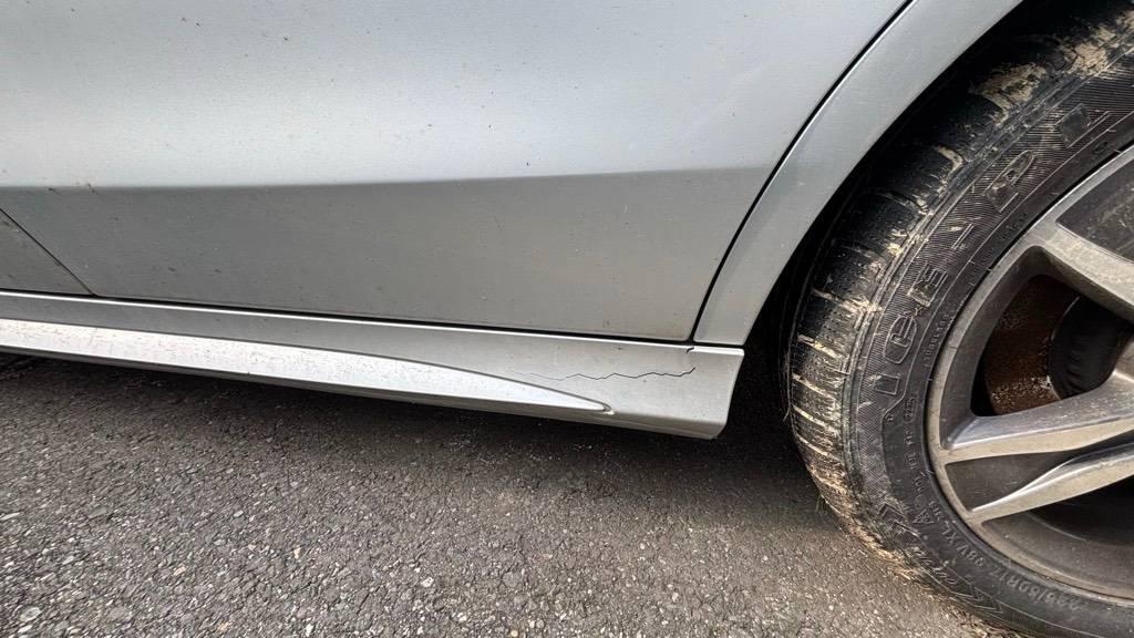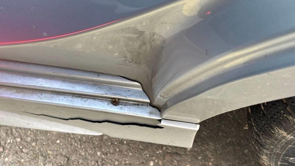 Aussenspiegel links, Das Fahrzeug hat rundum kleine Dellen, Beulen und Lackschäden, Diverse Gebrauchsspuren, Stosstange vorne