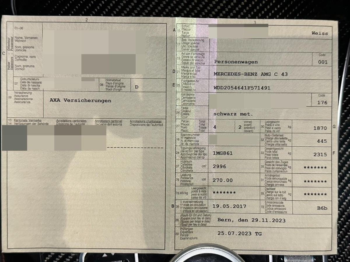| Fahrzeugausweis | Vorhanden |