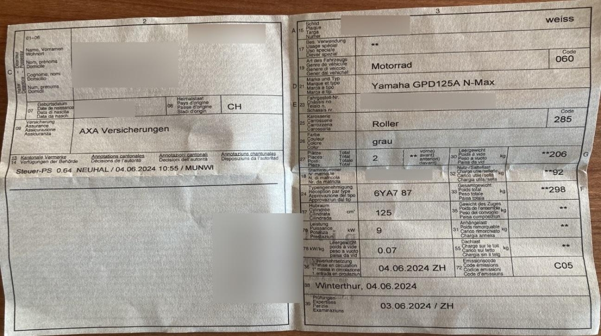 Fahrzeugausweis Vorhanden