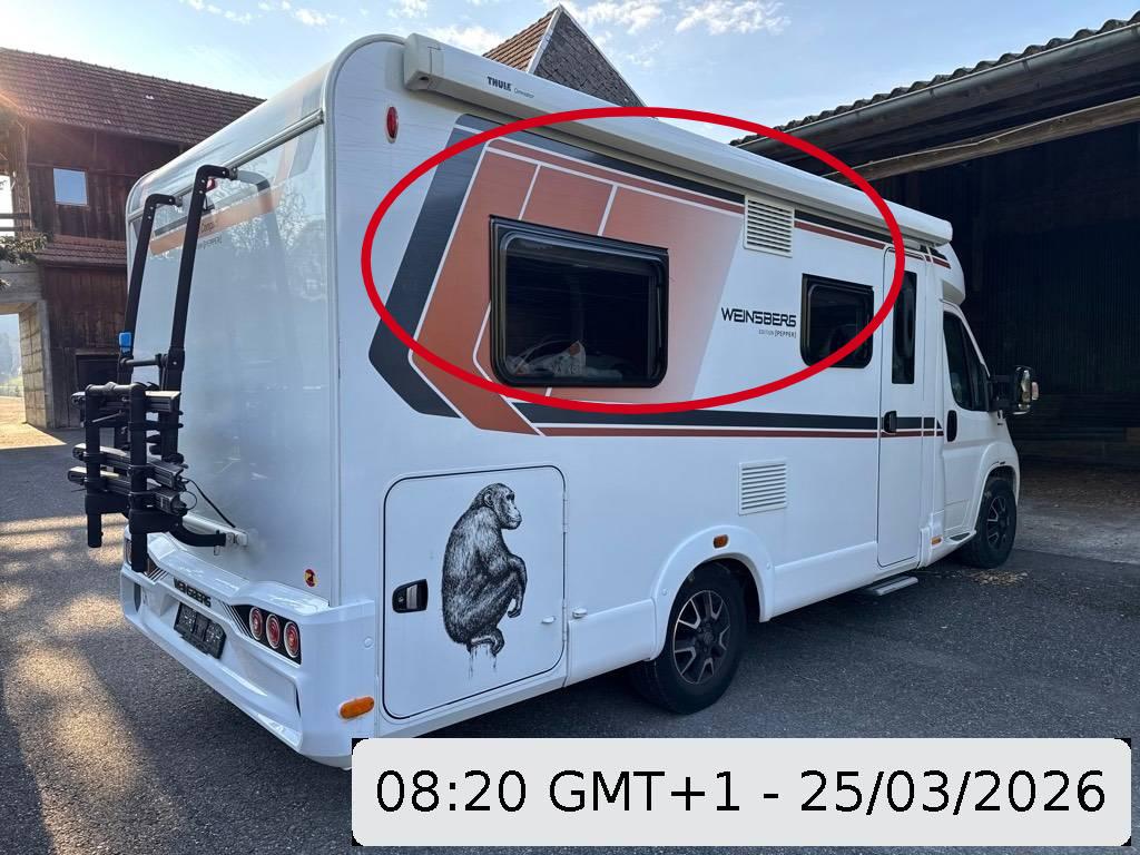 Seitenwände/Fenster oben links und rechts durch Bäume verkratzt
