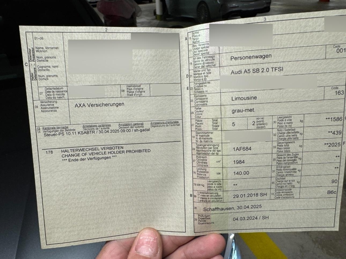 3-Punkt-Sicherheitsgurte auf allen Plätzen, Ablagen in den Türen, Airbag: Airbag Beifahrer deaktivierbar, Airbag: Airbag Fahrer und Beifahrer, Airbag: Seitenairbags vorne, Airbag: Window-Kopfairbags, Antiblockiersystem (ABS), Antriebsschlupfregelung (ASR), Aschenbecher und Zigarettenanzünder, Assist: Bremsassistent (BAS), Audi connect, Audi drive select, Audi pre sense city, Aussenspiegel in Wagenfarbe, Aussenspiegel rechts und links beheizbar und elektrisch verstellbar, Aussentemperaturanzeige, Bluetooth, USB-Anschluss und AUX-IN, Bremsenergie-Rückgewinnung, Dachhimmel, Dekorelemente Aluminium Ellipse, Digital Uhr, Drehzahlmesser, Einstiegsschienen, Elektrische Fensterheber vorne, Elektronische Differentialsperre (EDS), Elektronische Parkbremse, Fahrer-Informationssystem, Fahrwerk: Dynamisches Fahrwerk, Garantie: 2 Jahre ohne Kilometerbegrenzung (ab 1. Inv.), Gepäckraumklappe elektrisch öffnend und schliessend, Getriebe: 6-Gang-Getriebe manuell, Gurtstraffer vorne und hinten, Höhenverstellbare Gurten vorne, ISOFIX Kindersitzvorrichtung, Innenlicht-Abschaltverzögerung, Innenspiegel abblendbar, KEYLESS GO, Katalysator geregelt, Kindersicherung an den hinteren Türen, Kindersitzvorrichtung ISOFIX mit Deaktivierungsschalter für Beifahrer- Airbag, Klima: Klimatisierungsautomatik, Klima: Pollenfilter (Staubfilter), Knie-Airbag für Fahrer, Komforteinstieg, Kopfstützen hinten, Kopfstützen vorne höhenverstellbar, LED Blinker im Aussenspiegel, Lackierung: Uni-Lackierung, Leichtmetallräder im 5-Arm-Design 18J, Lenkrad: Leder-Multifunktionslenkrad im 3-Speichen-Design, Lenkrad: Lenkrad längs- und höhenverstellbar, Leseleuchten vorne, Leuchtweitenregulierung elektrisch, Licht: LED Heckleuchten, Licht: LED Scheinwerfer, Licht: Licht- und Regensensor, Licht: Nebelschlussleuchte, Licht: Tagfahrlicht, Media: 8 Lautsprecher, Media: Bluetooth-Schnittstelle, Media: Digitaler Radioempfang (DAB), Media: MMI Radio plus, Mittelarmlehne vorne, mit aufklappbarem Staufach, zwei 12V Steckdosen, Modellbezeichnungen (Logo & Model), Nebelscheinwerfer, Paket: Glanzpaket, Parkhilfe hinten, Polster: Stoff-Ausstattung, Radwechselwerkzeug, Räder: Reifendruck-Kontrollanzeige, Räder: Reifenreparatur-Set (Tire Fit), Rücksitzlehne geteilt abklappbar, Scheibenwischer vorne mit Intervall, Seitenairbag für Fahrer und Beifahrer, Seitenaufprall-Schutzsystem, Servolenkung geschwindigkeitsabhängig, Sitze: Sportsitze vorne, Sitze: Vordersitze höhenverstellbar, Sonnenblende zweifach, Start/Stop-Funktion, Tempomat, Teppichfussmatten vorne und hinten, Wagenheber, Wartungsintervall-Anzeige, Wegfahrsperre elektronisch, Wärmeschutzverglasung, Xenon Plus-Scheinwerfer, Zentralverriegelung mit Fernbedienung