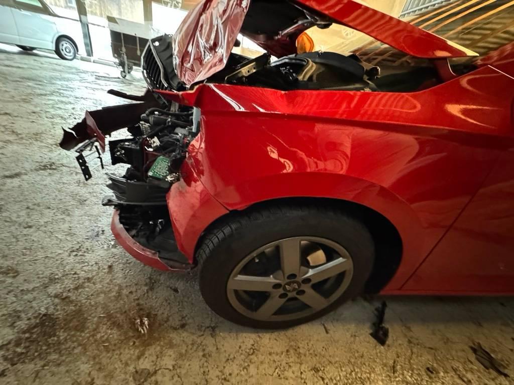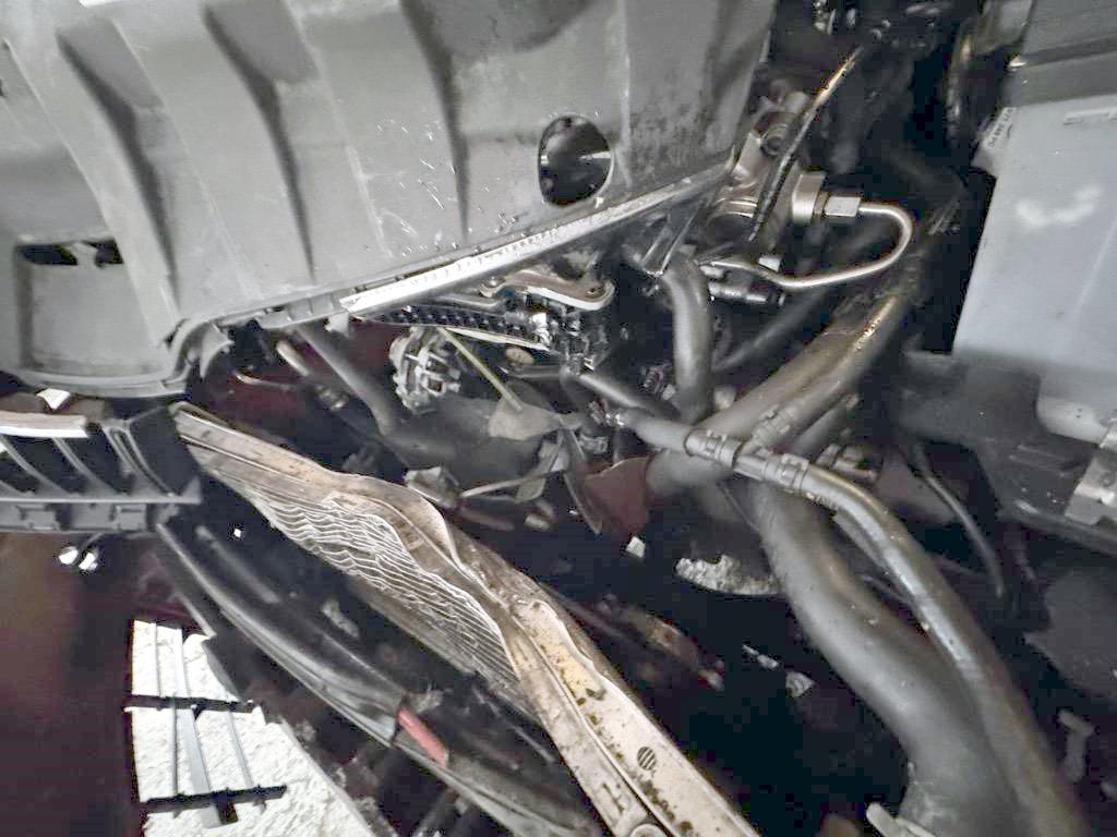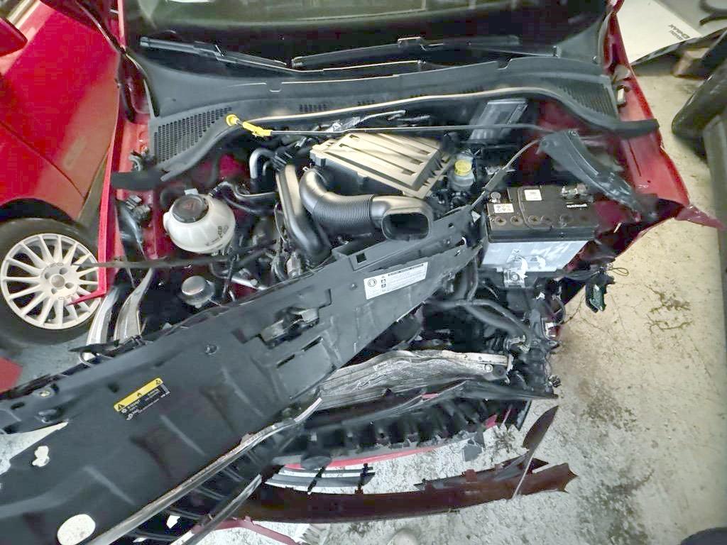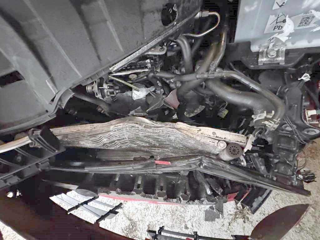 Airbag ausgelöst, Armaturenbrett, Federbein vorne links, Front, Front links, Front rechts, Gurtstraffer ausgelöst, Klimakühler, Kotflügel links, Kotflügel rechts, Kühler, Kühlgitter, Ladeluftkühler, Längsträger vorne links, Längsträger vorne rechts, Motor, Motorhaube, Querträger, Rad vorne links, Radaufhängung vorne links, Radhaus vorne links, Radhaus vorne rechts, Scheinwerfer links, Scheinwerfer rechts, Schweller links, Stosstange vorne, Türe vorne links