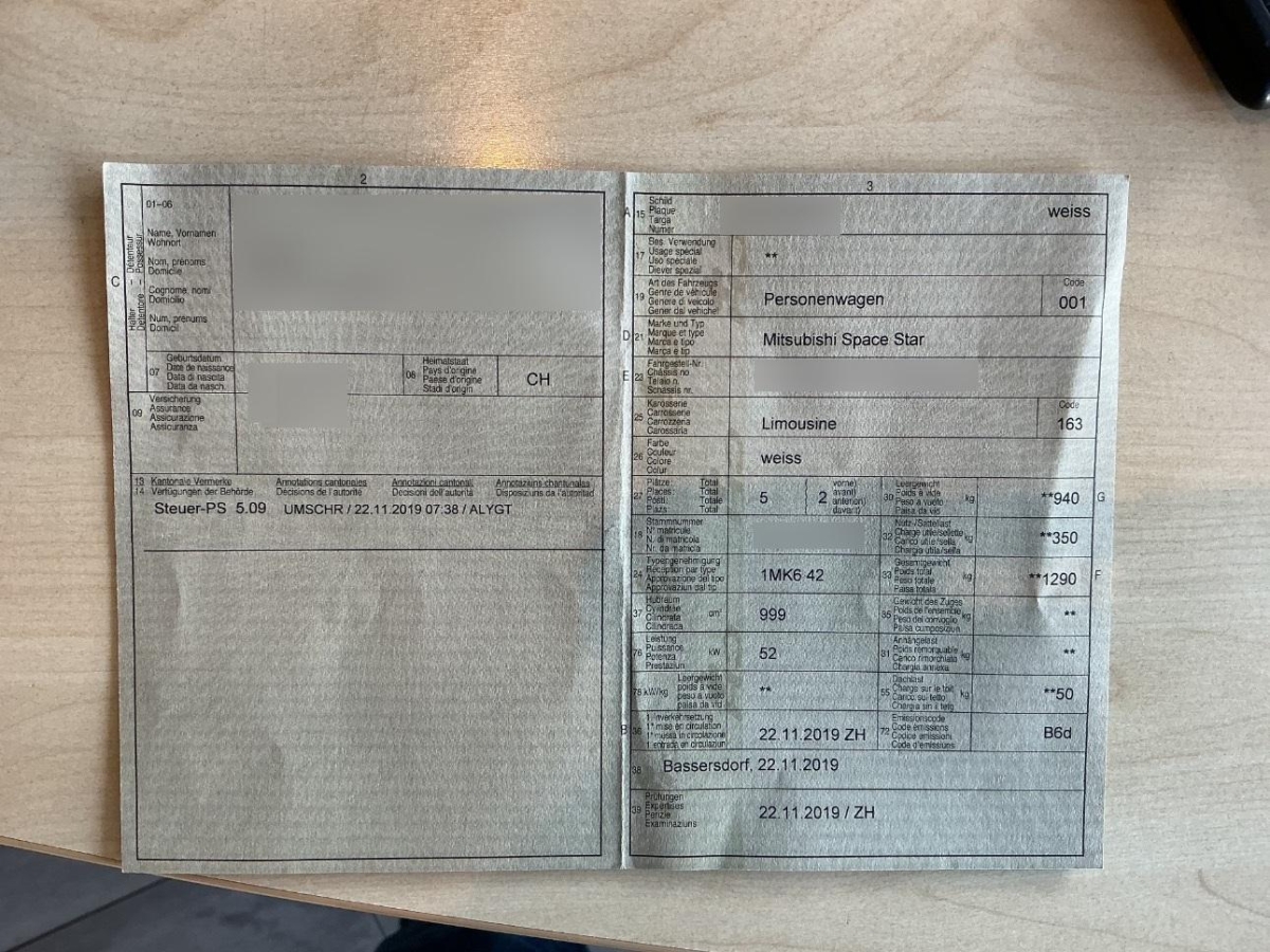 | Fahrzeugausweis | Vorhanden |