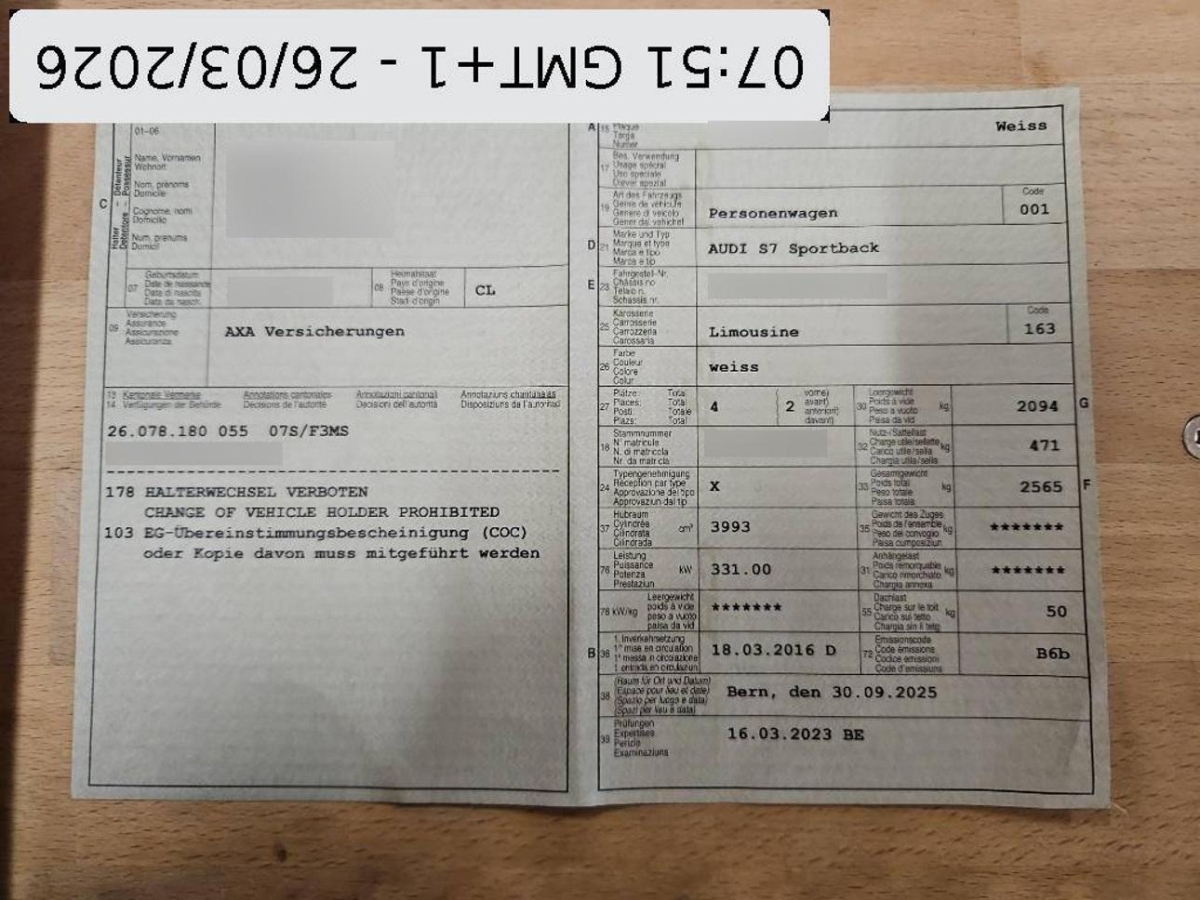 Ablagenpaket, Innenraumlicht-Paket, Kopfstützen hinten höhenverstellbar, Elektronisches Stabilitäts-Programm (ESP), Lackierung: Uni-Lackierung, Alu-Räder 5-Parallelspeichen 19J, Media: MMI Radio plus, Allradantrieb permanent, Klima: Klimatisierungsautomatik 4- Zonen, Steckdose 12V, Höhenverstellbare Gurten vorne, Airbag: Window-Kopfairbags, Assist: Park Distance Control vorne und hinten, Licht: LED Heckleuchten, Audi drive select, Kraftstofftank zusätzlich 10 Liter, Media: Digitaler Radioempfang (DAB), Sitze: Vordersitze heizbar, Antriebsschlupfregelung (ASR), Drehzahlmesser, Schalt- / Wählhebel in Leder, S Sportsitze im Fond, Media: MMI Navigationssystem Plus, Fensterschachtzierleisten in Aluminium, Durchladeklappe, Licht: Tagfahrlicht, Diebstahlwarnanlage mit Fernbedienung,, Seitenaufprall-Schutzsystem, Multifunktions-Sportlederlenkrad mit Schaltwippen, Start-/Stop-Knopf, Garantie: 2 Jahre ohne Kilometerbegrenzung (ab 1. Inv.), Sequentielles 7-Gang-Getriebe mit Automatikfunktion, Adaptive air suspension sport: elektronisch geregelte Luftfederung inkl. Niveauregulierung, Sicherheitslenksäule, Gurtkontrolle, Innenlicht-Abschaltverzögerung, Räder: Reifendruck-Kontrollanzeige, Adaptives Bremslicht, Licht: Licht- und Regensensor, Elektronische Parkbremse, Assist: Bremsassistent (BAS), Audi hold assist, Digital Uhr, ISOFIX Kindersitzvorrichtung, Licht: LED Scheinwerfer, Innenspiegel automatisch abblendbar, Dachhimmel, Tempomat, S Sportsitze, Gepäcknetz im Laderaum seitlich, Gurtstraffer vorne, ABS, EBD elektronische Bremskraftverteilung, Auspuffanlage mit 2 Endrohren (links und rechts), Anfahrassistent, Elektronische Differentialsperre (EDS), Servotronic, Abschliessbares Handschuhfach, Katalysator geregelt, Laderaumabdeckung, Elektrische Kindersicherung, Fahrer-Informationssystem mit Farbdisplay, Cupholder, Alcantara-/Leder-Ausstattung, Aschenbecher und Zigarettenanzünder, Airbag: Airbag Fahrer und Beifahrer, Kreuzstützen für Vordersitze elektrisch verstellbar, Seitenairbag für Fahrer und Beifahrer, Veloursfussmatten vorne und hinten, Wartungsintervall-Anzeige, 3-Punkt-Sicherheitsgurte auf allen Plätzen, Media: Audi Sound System, Zentralverriegelung mit Fernbedienung, Stopp-/Start-System, Sitze: Rücksitze geteilt abklappbar, Gepäckraumklappe mit automatischer Öffnung, Mittelarmlehne vorn in Kunstleder schwarz mit Kontrastnaht in Rot, Audi pre sense basic, Aussenspiegel rechts und links beheizt, elektrisch verstell- / und einklappbar mit Memory-Funktion, Kopfstützen vorne höhenverstellbar, Aussentemperaturanzeige, Räder: Reifenreparatur-Set (Tire Fit), LED Blinker im Aussenspiegel, Wärmeschutzverglasung, Mittelarmlehne hinten, Heckspoiler, geschwindigkeitsabhängig elektrisch ausfahrbar, Audi Phone Box und Audi connect, Vordersitze elektrisch verstellbar, Fahrersitz mit Memory-Funktion