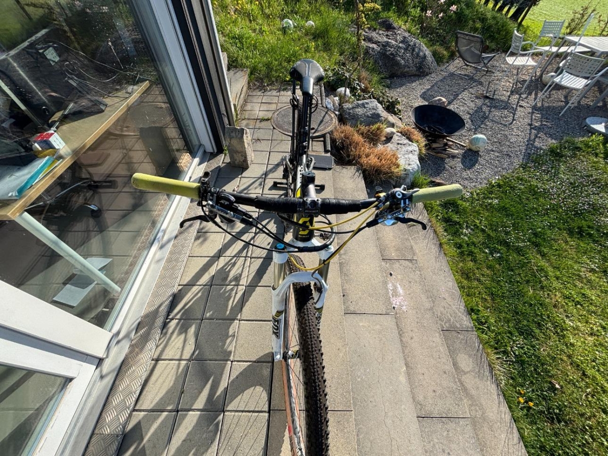 Info – Gabel beschädigt, Rahmen beschädigt, Lenker beschädigt, keine brauchbaren Teile.