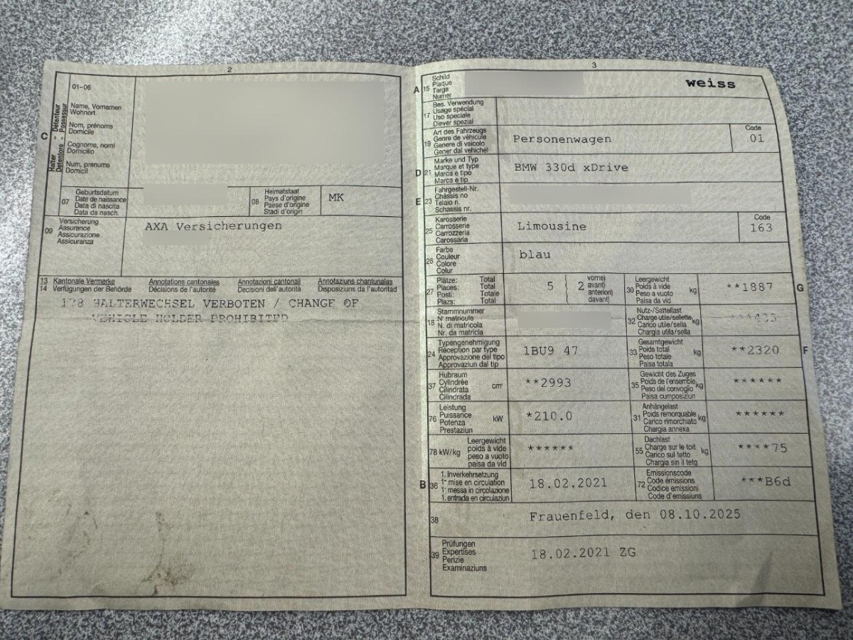 Check-Control, Licht: LED Scheinwerfer, BMW Mobiler Service – Hilfe im Pannenfall, Airbag: Airbag Beifahrer deaktivierbar, Elektrische Fensterheber, Assist: Dynamische Traktionskontrolle (DTC), Getriebe: Steptronic Getriebe, 8-Gang, Assist: Akustischer Fussgängerschutz, Assist: Frontkollisionswarnung mit Bremseingriff, Antiblockiersystem (ABS), Fussmatten in Velours, Ambientes Licht – Mit Ambiente-Lichtdesigns – Umfasst 11 vordefinierte wählbare Lichtdesigns in 6 Farben (Orange, Grün, Blau, Flieder, Bronze und Weiss) – Zusätzlich inszeniert der Lichtteppich im Ein- und Ausstiegsbereich links und rechts durch Lichtprojektion eine ambiente Lichtgrafik, Grösserer Kraftstofftank – Vergrösserung des Kraftstofftanks von 40 l auf 59 l – Vergrösserung des AdBlue-Tanks von 10,4 l auf 18,9 l, Einstiegsleisten, Paket: Ablagenpaket Im Interieur: – Klappfach Instrumententafel Fahrerseite – Mittelkonsole, hinten: eine Doppel-USB-Buchse (nur Laden: Typ C/3,0 A) – Fahrer- und Beifahrersitz: Netze an Sitzlehnerückseite, jeweils in Farbe der Sitzblende Im Gepäckraum: – Netz, schwarz, mit Rahmen, links, rechts – Multifunktionshaken, Assist: Crash-Sensor, Licht: Heimleuchten, Media: Lautsprechersystem Stereo, Parkbremse, elektromechanisch, BMW Live Cockpit, Licht: LED Nebelscheinwerfer, Paket: Connected Package, Condition Based Service, Durchladesystem, BMW BluePerformance mit AdBlue, Fahrerlebnisschalter, Sitze: Sportsitze für Fahrer und Beifahrer Höhere Sitzwangen, elektrische Lehnenwangenverstellung und manuell einstellbare Oberschenkelauflage, Polster: Stoff-/Sensatec-Kombination, Partikelfilter und Oxydationskatalysator, Lenkrad: Sport-Lederlenkrad, Räder: Reifen Pannen Anzeige, BMW Teleservices, Ölsensor für Niveau und Qualität, Beleuchtete Bügeltürgriffe vorn und hinten, Mittelkonsole, hinten, Auto Start Stop Funktion, Dekor: Interieurleisten schwarz hochglänzend mit Akzentleisten Perlglanz Chrom, Kindersitzbefestigung ISOFIX, Intelligenter Notruf, Media: USB-Anschluss, Licht: Tagfahrlicht, Regensensor für Scheibenwischer vorne, Ablagemöglichkeiten, Lenksäulenverstellung, Steckdose 12V, Assist: Park Distance Control vorne und hinten, Fondkopfstützen, klappbar, Räder: 17″ Leichtmetallräder V-Speiche 776 Ferricgrau 7,5 J×17/Bereifung 225/50 R 17, Räder: Radschraubensicherung, BMW Individual Hochglanz Shadow Line Ausführung in Schwarz hochglänzend: – Blende Spiegeldreieck – Spiegelschwert, -fuss und -brille – B-Säule und Fensterführungsstege – Fensterschachtabdeckung – Fensterumrandung, Active Guard Plus – Spurverlassenswarnung mit aktiver Rückführung (ab ca. 70 km/h) – Auffahr- und Personenwarnung mit City-Bremsfunktion – Speed Limit Info mit manuellem Speed Limit Assist, Leuchtweitenregulierung, Elektronische Wegfahrsperre, Licht: Heckleuchten in LED-Technik, Licht: 3. Bremsleuchte, iDrive Controller, Scheibenwischer mit integrierten Waschdüsen, Wärme-/Sonnenschutzverglasung, Klima: Klimaautomatik – 3-Zonen-Klimaautomatik mit erweiterten Umfängen – Beschlag- und Solarsensor – Aktivkohlefilter für Frisch- und Umluft – Standlüftung mit Timer und Direktbetrieb – Digitales Display Mittelkonsole hinten, Räder: Reifendruck-Kontrollanzeige, Verzurrösen, Media: DAB+ Tuner, Assist: Geschwindigkeitsregelung mit Bremsfunktion, Getränkehalter, Airbag: Kopfairbags für alle 4 äusseren Sitzplätze, Innenspiegel, automatisch abblendend Abblendsteuerung mittels eingebauter Sensorik, die das von hinten einfallende Licht misst und bei berechneter Blendung den Innenspiegel entsprechend abblendet, Airbag: Seitenairbag für Fahrer und Beifahrer, Lenkrad: Multifunktion für Lenkrad, Armauflage, Seitenaufprallschutz, Licht: Begrüssungslicht, Servotronic, Media: Freisprecheinrichtung mit USB-Schnittstelle, Dachzierleisten in Schwarz, Verzurrösen, Media: ConnectedDrive Services – Beinhaltet die kostenlose Nutzung von Fahrzeug Apps über BMW Online (inkl. Zugriff auf Wetterinformationen, Nachrichten, Adresssuche etc.) für 3 Jahre – Registrierung erforderlich für personalisierbare Dienste – Der Dienst BMW Online ist ab 2 Wochen vor Ablaufdatum via BMW ConnectedDrive Store kostenpflichtig verlängerbar, Endrohrblenden, sichtbar, Innenbeleuchtung, Airbag: Airbag Fahrer und Beifahrer, Sonnenblenden, Warndreieck, Dynamische Stabilitätskontrolle (DSC), BMW Garantie: 3 Jahre oder 100’000 km Gratis-Service: 10 Jahre oder 100’000 km (ab 1. Inv.), Gepäckraumleuchte, Personal Profile, BMW Niere mit 8 Gitterstäben je Segment, Schwarz hochglänzend und Rahmen in Chrom hochglänzend, Schliessystem mit Zentralverriegelung