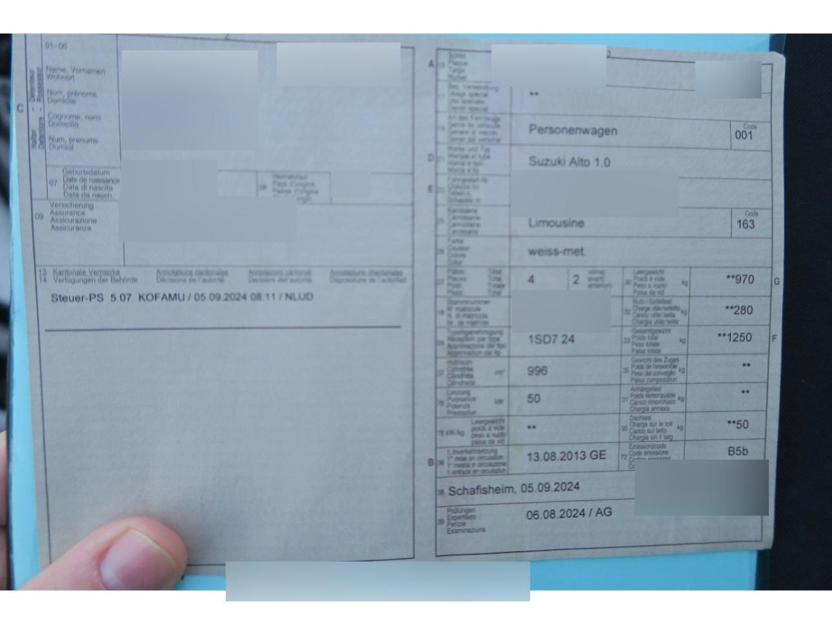 | Fahrzeugausweis | Vorhanden |