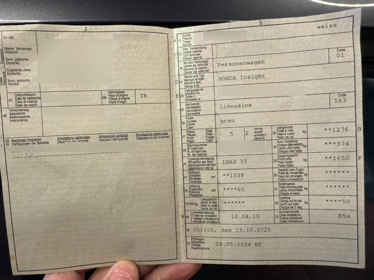 Fahrzeugausweis Vorhanden