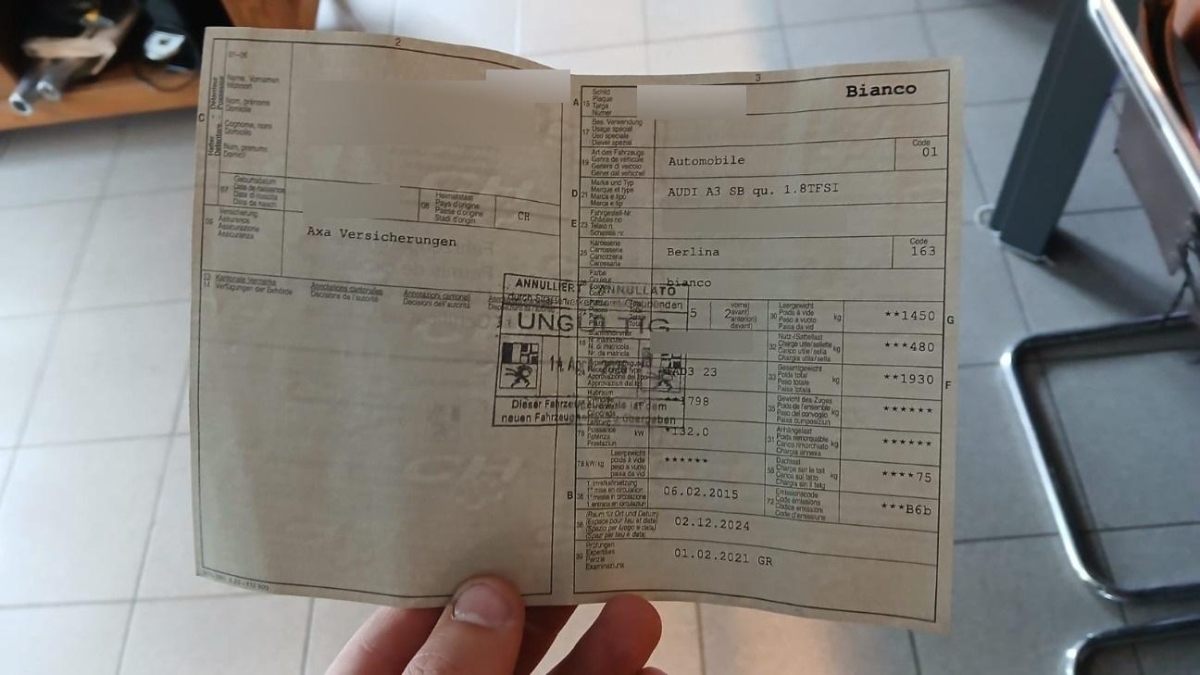 Fahrzeugausweis Vorhanden