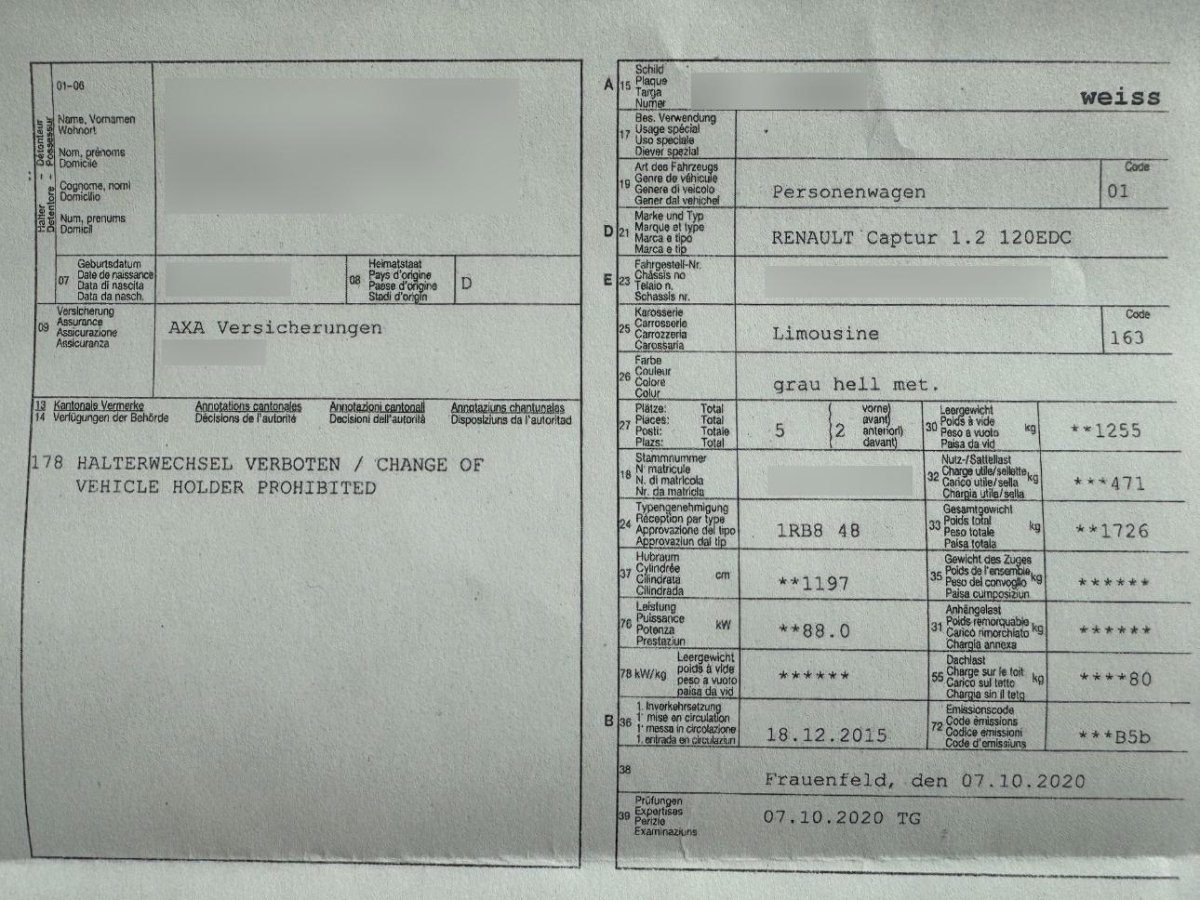 Die (vom Fahrzeugexperten) ermittelten Reparaturkosten beziehen sich auf das versicherte Ereignis. Allfällige zusätzliche, nicht versicherte Schäden/Vorschäden, sind in den Reparaturkosten nicht enthalten. Die deklarierten Ausstattungsmerkmale können von der effektiven Ausstattung abweichen.