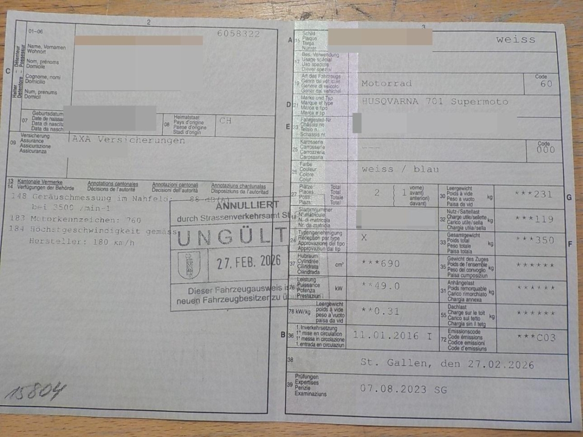 | Fahrzeugausweis | Fehlt |