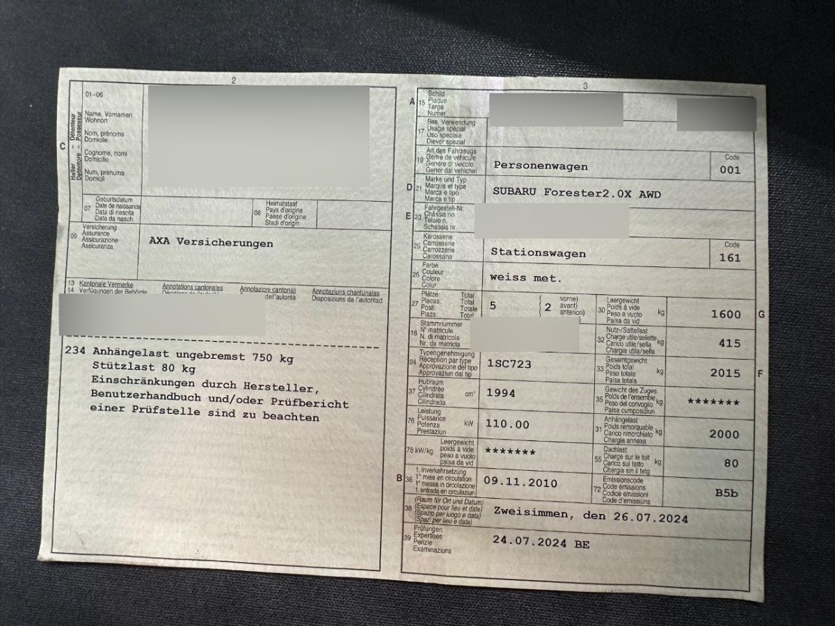 Fahrzeugausweis Vorhanden