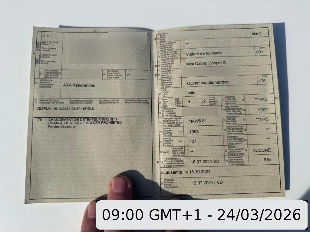 Airbags: Fahrer- und Beifahrerairbag, Seitenairbags für Fahrer und Beifahrer, Kopfairbags vorne und hinten, Start-Stopp-Automatik, Türleisten – Metallic-Optik, mit Motorisierungsbezeichnung, 7-Gang-Doppelkupplungsgetriebe – mit Start-Stopp-Funktion, Handschuhfach, Spiegelkappen in Wagenfarbe, Verdeck in Schwarz, vollautomatisches Verdeck, Katalysator kalibriert, 3-Punkt-Sicherheitsgurte auf allen Plätzen, Klimaanlage, Parkassistenz hinten, dynamische Traktionskontrolle (DTC), dynamische Stabilitätskontrolle (DSC), Kurvenbremskontrolle (CBC), Crash-Sensor, DAB+ (Digital Audio Broadcasting), Ablagefächer in den Türverkleidungen und in der Mittelkonsole, Scheibenwischer vorne mit Regensensor und automatischer Einschaltung des Abblendlichts, Nebelschlussleuchte, weiße Blinker, Tagfahrlicht, dynamische Bremsleuchten, Pollenfilter (Staubfilter), ISOFIX-Befestigung für Kindersitz, ISOFIX-Befestigung für Kindersitz auf dem Beifahrersitz, einschließlich Deaktivierung des Beifahrerairbags, beheizbare Scheibenwaschdüsen, Reifendruckanzeige – Reifendruckkontrolle mittels Sensoren in jedem Rad, 16-Zoll-Leichtmetallfelgen „Revolite Spoke“ – 7 J×16, Reifen 205/55 R 16, Kopfstützen, alle Sitzplätze, Lackierung: Metallic-Lackierung Moonwalk Grey, Beleuchtung: LED-Scheinwerfer – Beleuchtung mittels Bi-LED-Scheinwerfern für Abblend- und Fernlicht; inklusive LED-Rückleuchten, Beheizbare Heckscheibe, Medien: Radio MINI Visual Boost – 8,8-Zoll-Display, Radio mit AM/FM, Diversity-Antenne, Bluetooth-Freisprecheinrichtung, MINI-Garantie: 3 Jahre oder 100.000 km, Bordcomputer, Paket: Connected Media, USB-Anschluss, Getränkehalter, 12-V-Steckdose, Höhenverstellung des Beifahrersitzes, Servotronic, Sportsitze vorne, Sitze: Höhenverstellbare Vordersitze, Innenausstattung in Piano Black, Antiblockiersystem (ABS), Wegfahrsperre, Überrollschutzsystem, Stoffbezüge: Double Stripe, Warndreieck, Zentralverriegelung mit Fernbedienung, Wärmeschutzverglasung, elektrische Fensterheber, Multifunktionslenkrad, höhen- und tiefenverstellbares Lenkrad, Lenkrad: Sportlenkrad aus Leder, Sonnenblenden für Fahrer und Beifahrer, Start/Stopp-Knopf, Innenbeleuchtung