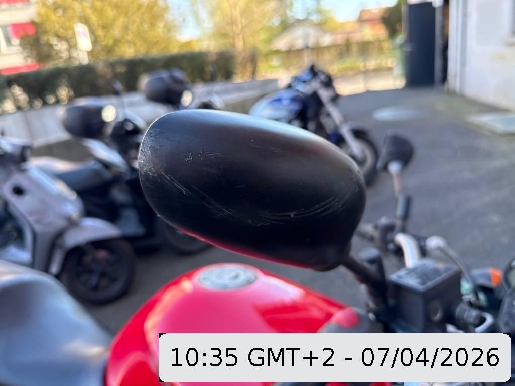 Aussenspiegel rechts, Front, Fussraster rechts, Griff rechts, Heckverkleidung, Kupplungsgehäuse, Lenkanschlag, Lenker, Motor, Motorgehäuse, Rad vorne, Schutzblech vorne, Seite rechts, Tank, Verschalungen hinten, Verschalungen rechts, Verschalungen vorne